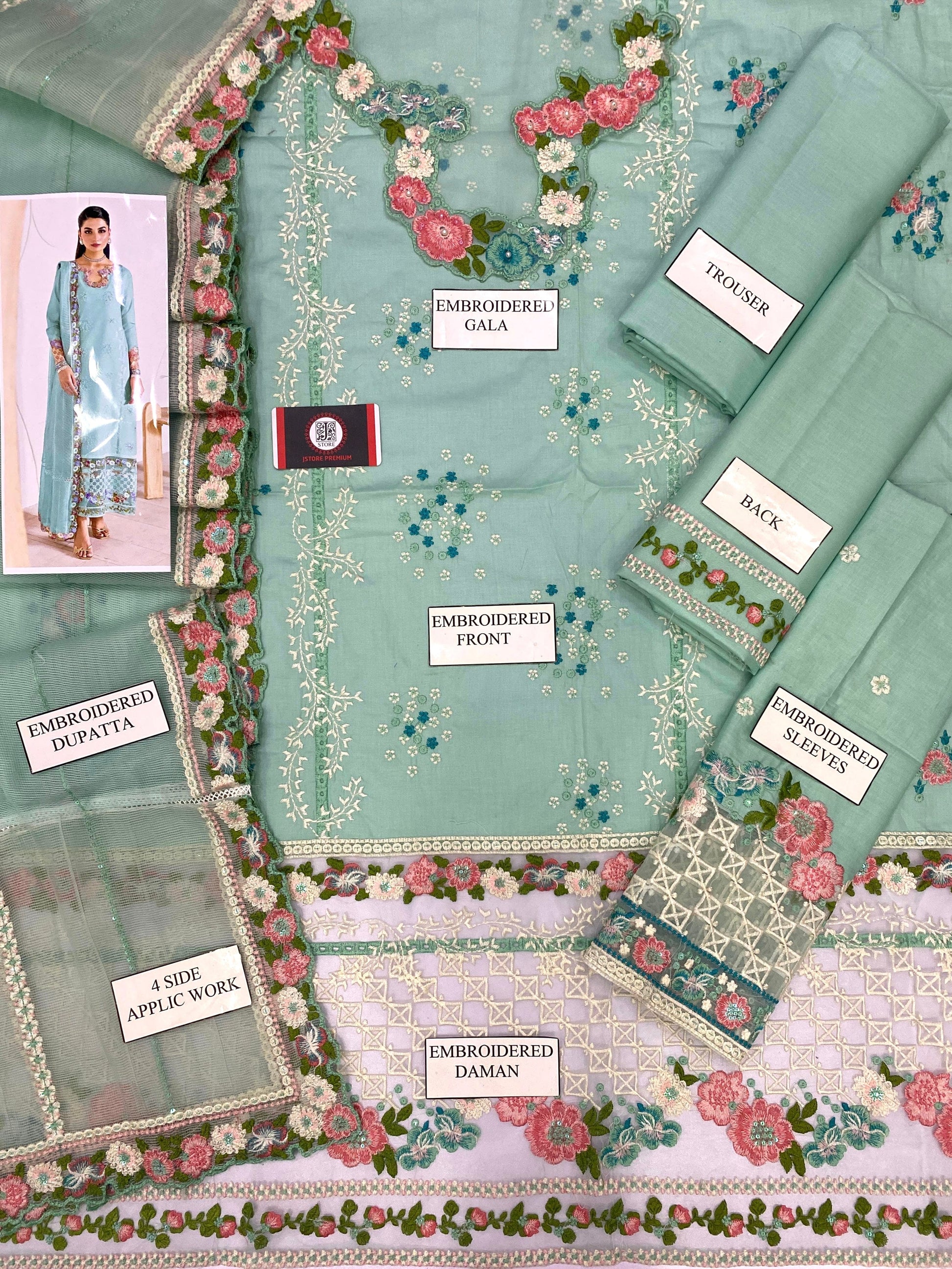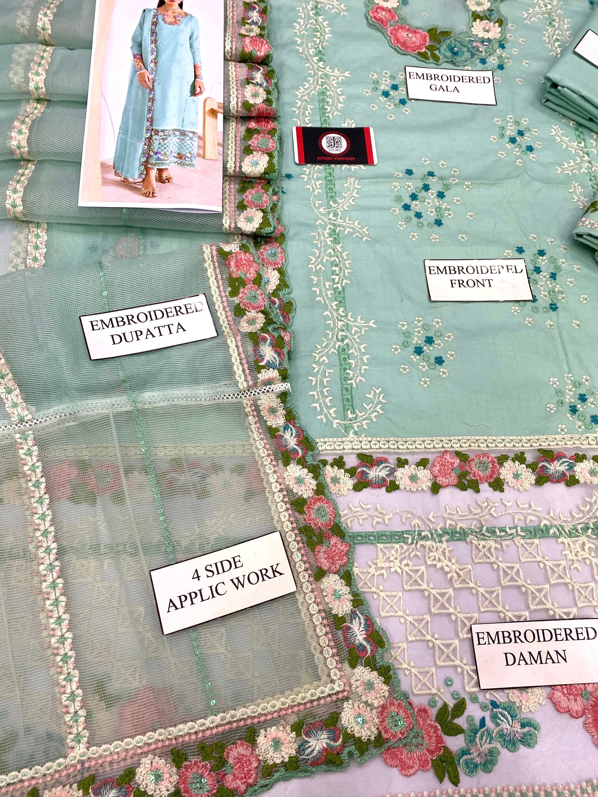 MUSHQ | ELITE FLORAL CHIKENKARI KHADDI NET DUPATTA |3PEC UNSTICHED