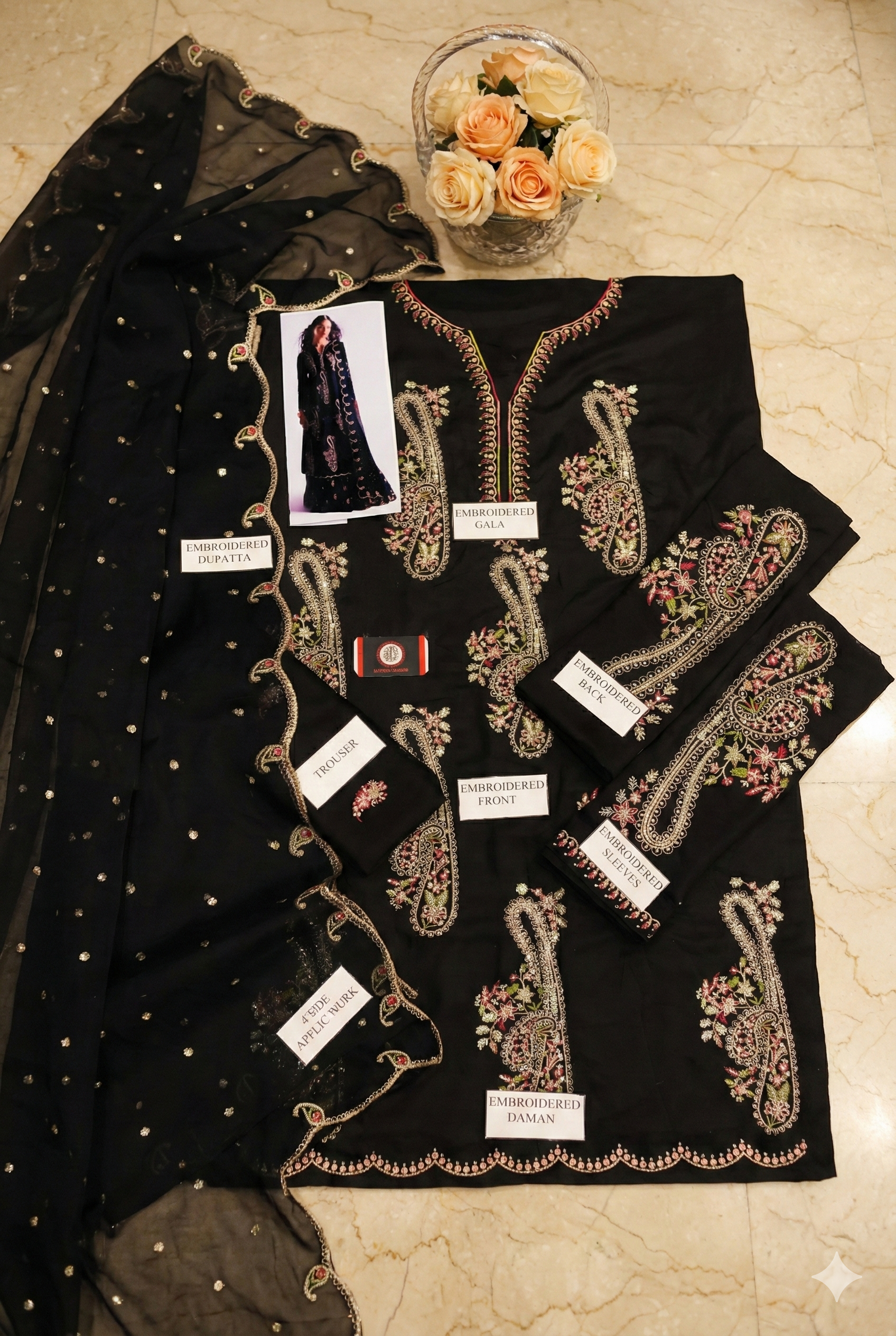 ZARA SHAH JAHAN IVORY BLOSSOM BLACK 3PEC UNSTICHED